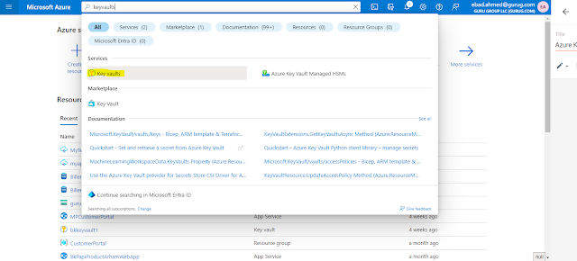 Go to the Azure Subscription you have on Azure Portal. Search for KeyVaults page.
