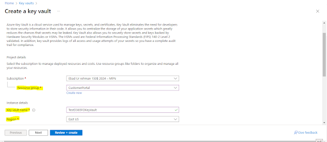 Location: Choose a region where your KeyVault will be deployed.