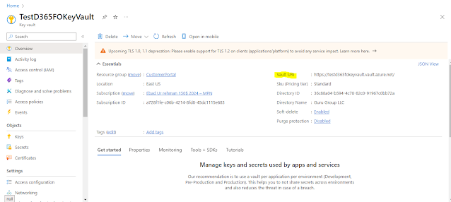 Copy the KeyVault URI we just created, we will use it inside our D365FO application.