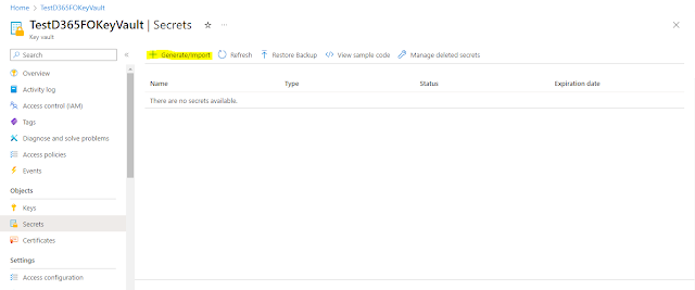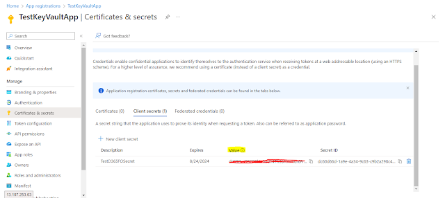 Now let’s see how we can create KeyVault, store secrets and retrieve it in our D365FO application.