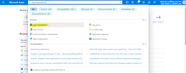 On the Azure Portal, search for App Registration.