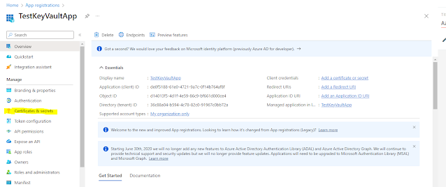 In this manner, we can retrieve any secret defined in the Azure KeyVault.