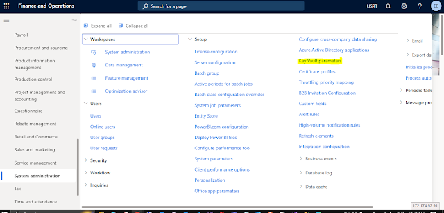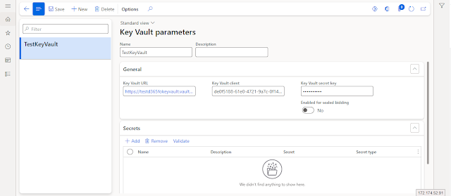 Navigate to System administration > Setup. Open the Key Vault parameters form.