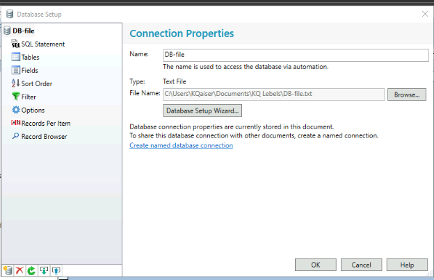 Step 2: Connect the Label to the Data Source (DB-file.txt)