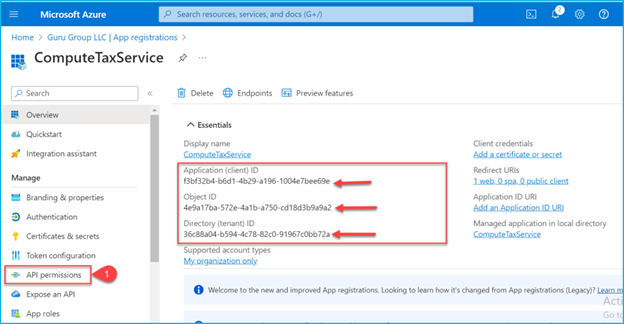 App has been registered. keep save the Application (client) ID, Object ID and Directory (tenant) ID for further use: