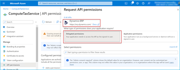 First click on Delegated permissions: