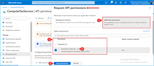 Now this time click on Application permission and follow the steps: