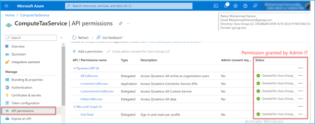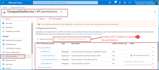 Contact your IT admin to grant the permissions to complete the permission process successfully: