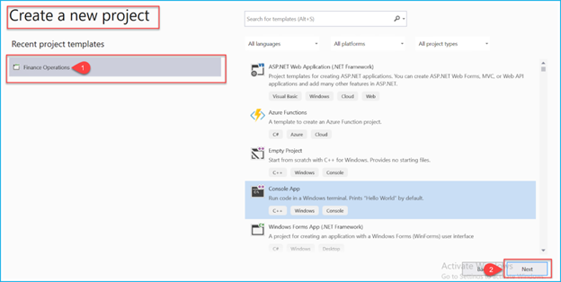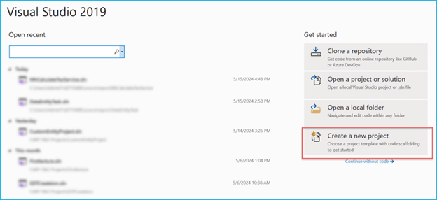 Create a new project in Visual Studio