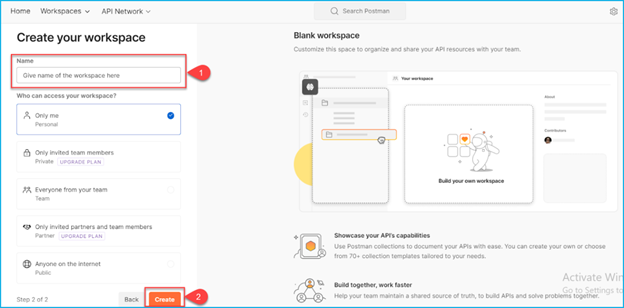 Follow the steps to create new workspace: