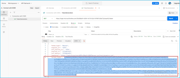 After saving and “Send” the GET request, I got the token, copy this token: