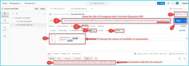 Copy the above URL in step 3 and follow the following steps:Passing the parameters Sale Oder and amount for which we find the amount with tax.