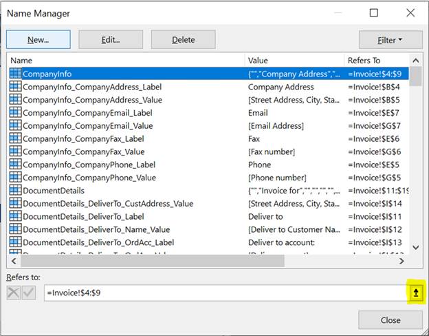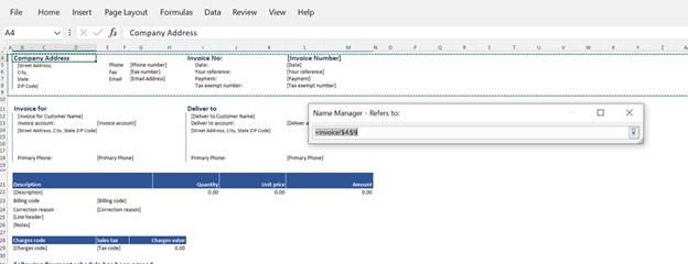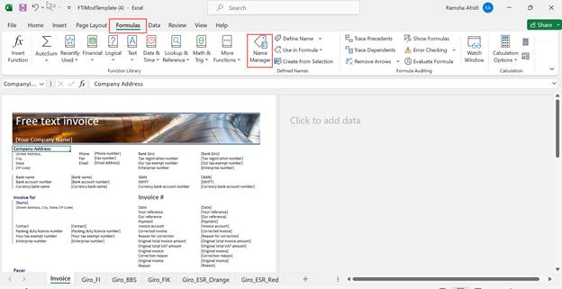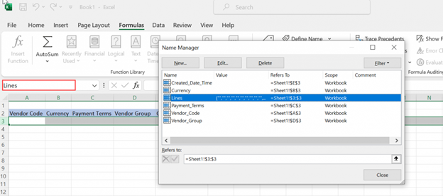Open the downloaded Excel template. Select the range you want to update and go to Formula > Name Manager.
