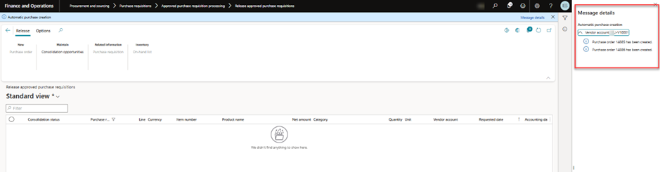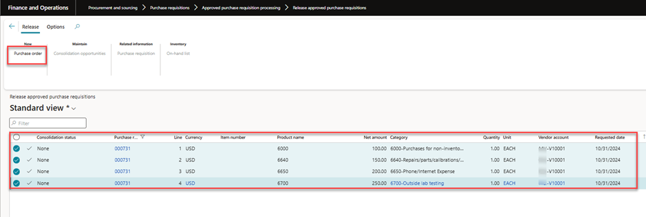 Procurement and sourcing > Purchase Requisitions > approved Purchase Requisitions Processing