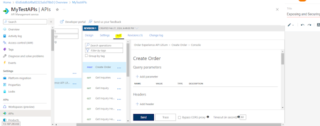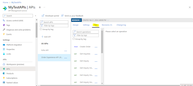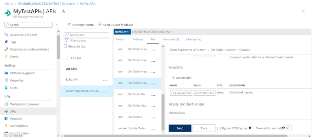 Copy the Primary key and lets test our API with this key. Navigate back to APIs in the left side of the menu. Open the Test tab on the upper side of the menu.