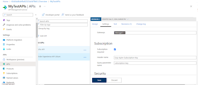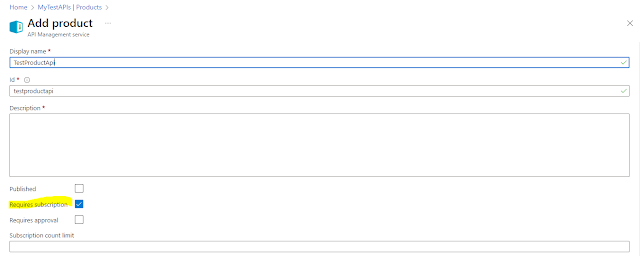 We can also uncheck this and there will be no need for subscription key.But for our scenario we will use the subscription keys.So here is a question where we will be creating the subscription keys.So lets create one.