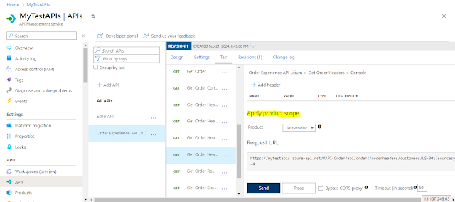 Select any API you want to test. As you can see we can select the product we created.