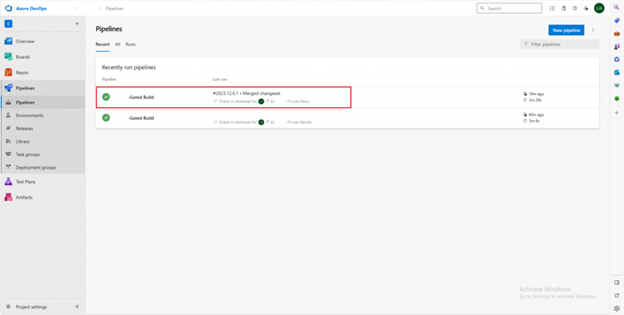 Step # 1: Go to Azure DevOps -> Pipelines -> Recent -> 10.0.37-Gated Build