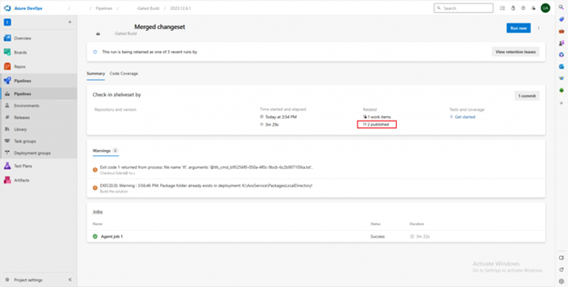 Step # 3: After selecting pipeline, go to summary -> Check-in shelveset by -> published