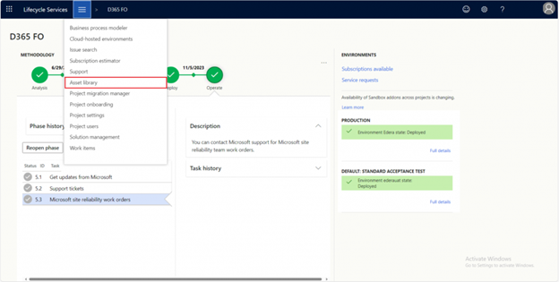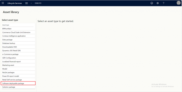 Step # 5: After successfully downloading the deployable package, go to Lifecycle Services Environment -> Asset library